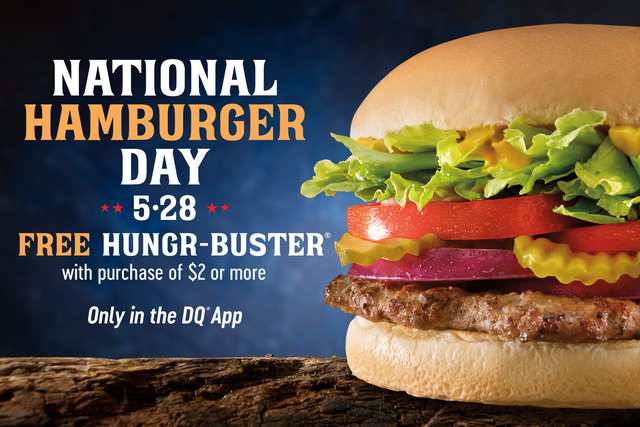 DQ® restaurants in Texas are serving up a sizzling offer on National Burger Day that is too good to miss: a FREE Hungr-Buster® with any $2 purchase, exclusively through the DQ® App, available only on May 28 at participating locations.